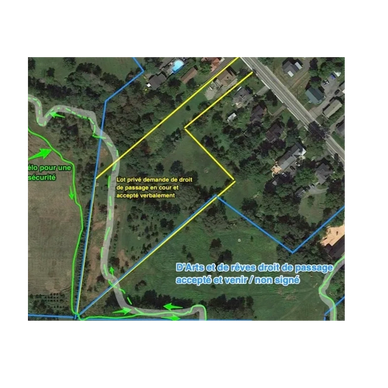 Récemment, nous avons acquis un droit de passage jusqu'au Rocher Bleu, ce qui indique que nous pourrons progressivement rejoindre la zone résidentiel Hivernons. Cependant, l'utilisation de ces sentiers est actuellement en suspens, car nous devons encore nous y rendre. Le lien nécessaire n'a pas encore été établi, certain droit de passage reste à signé.